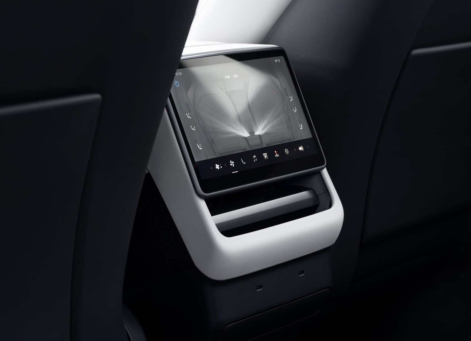 Interiorul promite confort și tehnologie. Un ecran central mai mare (16 inchi) domină consola, în timp ce un al doilea ecran de 8 inchi este disponibil pentru rândul doi. Pad-ul de încărcare wireless frontal suportă încărcare simultană rapidă de 50 și 30 W, iar fiecare loc din rândurile doi și trei dispune de porturi de încărcare.