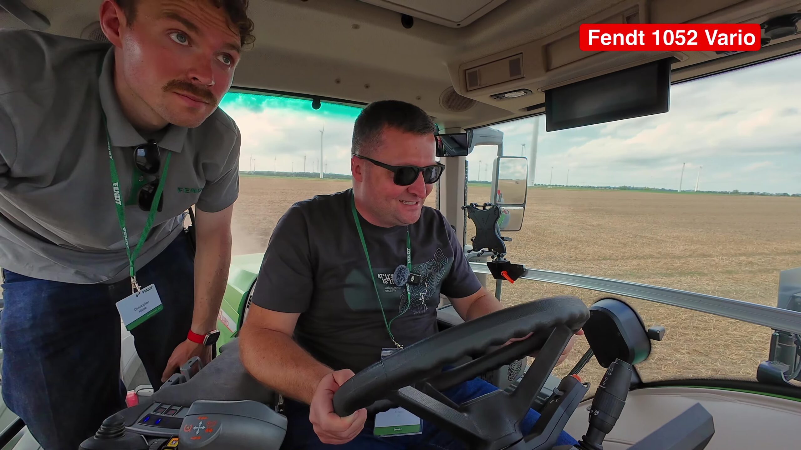 Cel mai impresionant: Fendt 1052 din seria 1000, cu 550 CP (are o greutate de 14 tone și maximă permisă de 21 tone). Cu un plug de arat atașat, manevrabilitatea îi este uimitoare – direcție progresivă, scaun amortizat și LED-uri de 1500 lumeni care luminează câmpul ca ziua.