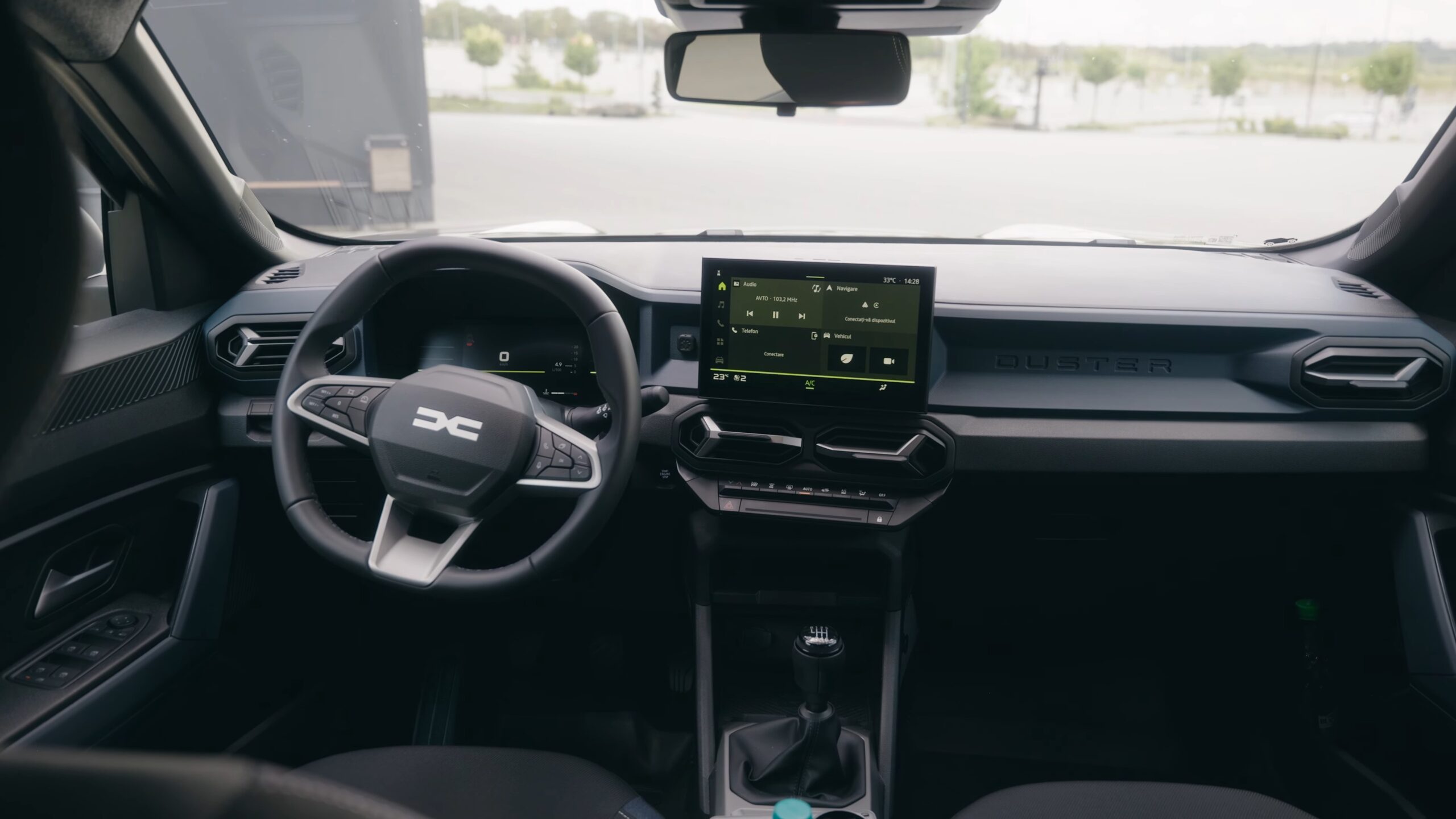 Interiorul lui Duster Journey este bine echipat pentru segmentul său. Punctul forte este ecranul multimedia cu rezoluție excelentă, vizibil chiar și în soare puternic, compatibil cu Apple CarPlay și Android Auto wireless! Meniul este intuitiv, iar informațiile sunt clare, inclusiv prin ochelari polarizați. Scaunele frotnale oferă confort decent, iar spațiul interior este tipic pentru Duster – practic și funcțional.