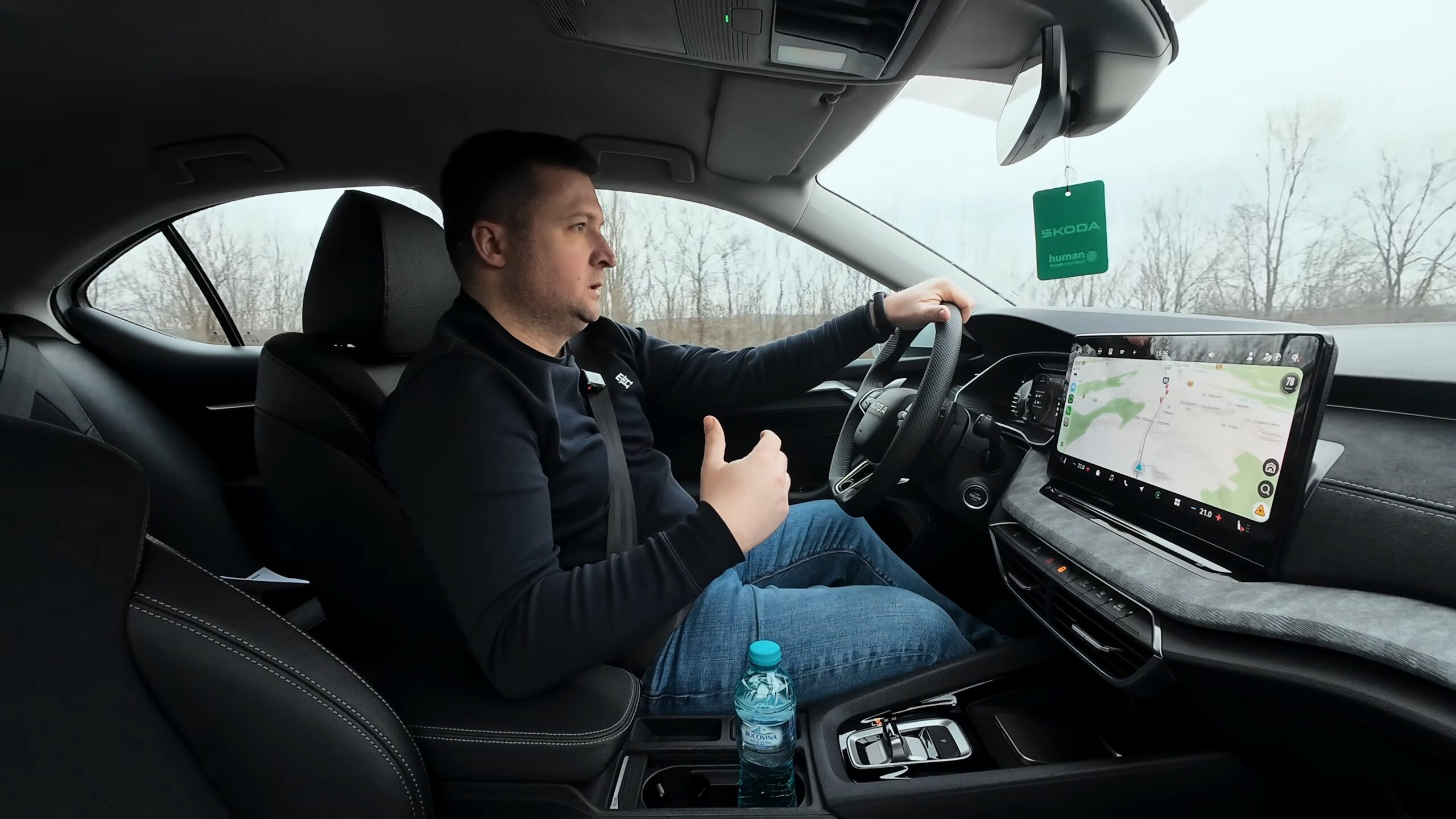 Un alt aspect notabil este eficiența motorului pe benzină. Deși vorbim de o unitate de 2.0 litri, cu 204 CP/320 Nm și tracțiune integrală, consumul declarat în test a fost unul surprinzător de bun. După un traseu mixt, ce a inclus atât drumuri naționale, cât și accelerări pentru a testa dinamica, consumul mediu afișat era de doar 6.7 litri/100 km. La un moment dat, acesta a scăzut chiar la 6.6 litri. Este o valoare excelentă pentru o mașină de această putere, ceea ce duce la o autonomie impresionantă.