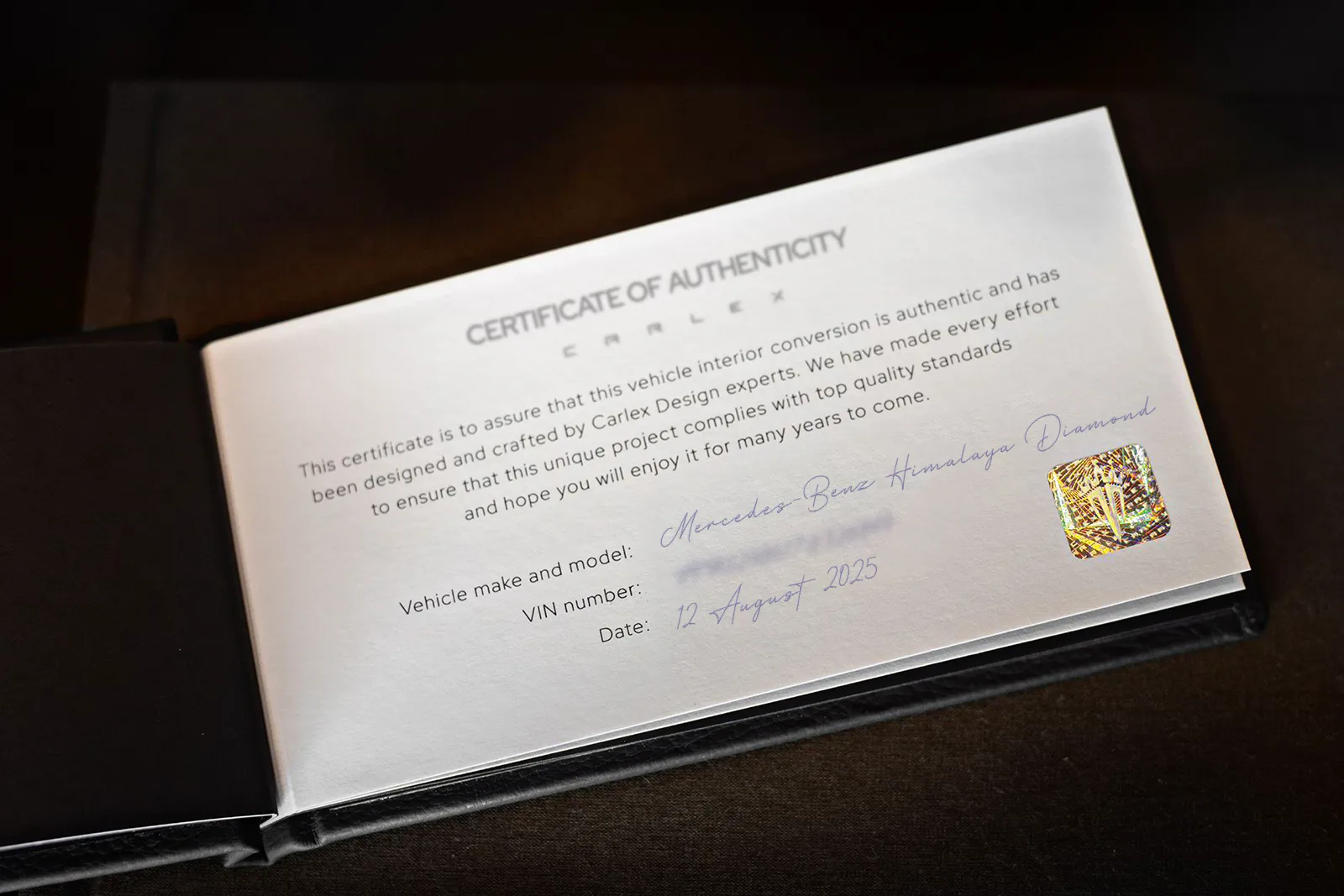 Himalaya „Diamond” combină un exterior calm, minimalist cu un interior meșteșugit ca o operă de artă. Tonurile off-white, aproape într-un ivoriu, curg prin cabină, îmbunătățind precizia sa arhitecturală și armonia. Texturi contrastante – netede, mate și moi reflectante – coexistă pentru a forma o compoziție serenă. Fiecare suprafață, cusătură și margine întruchipează filozofia atelierului Carlex Design: frumusețe născută din disciplină, proporție și atingere.