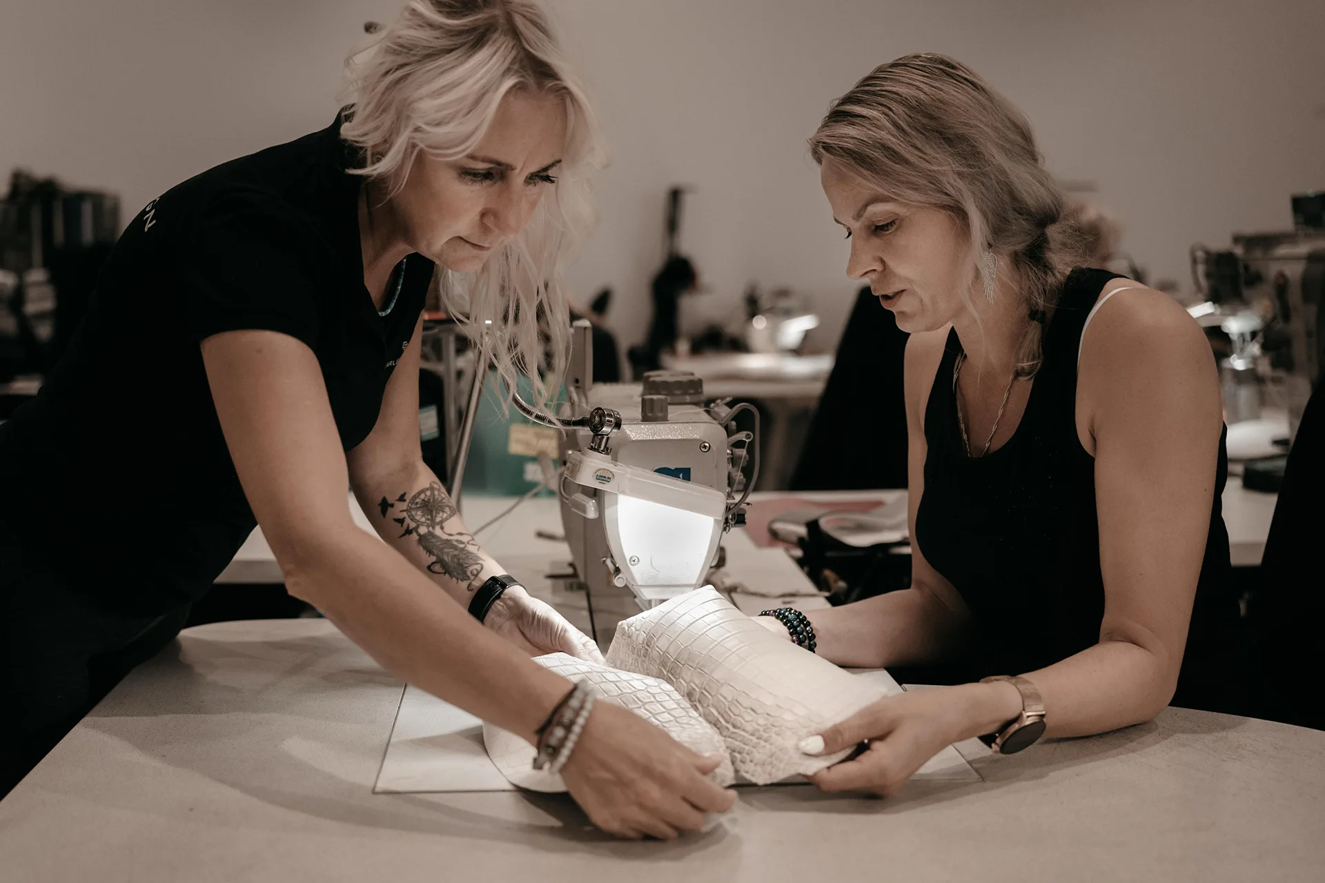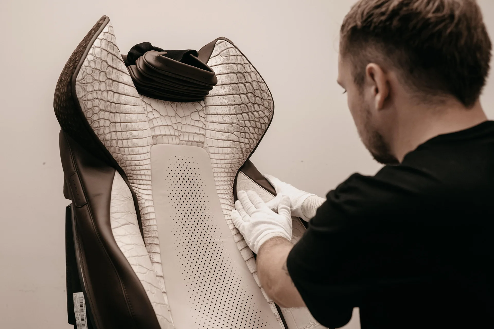 Toate materialele au fost produse special la comandă în cele mai fine ateliere din Europa. Carlex Design s-a implicat în acest proces de la prima selecție a pieilor brute. Fiecare detaliu, de la intensitatea nuanței, miros, moliciune, până la cantitatea de diamante, a fost planificat meticulos.