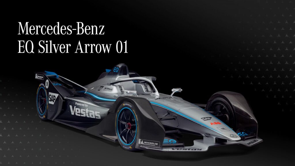 Monopostul a primit o denumire în care EQ indică sub brandul mărcii pentru modelele electrice de regulă stradale, Silver Arrow face referire la supranumele pe care îl au şi l-au avut maşinile de curse ale mărcii, iar cifrele vor indica numărul de ordine pentru fiecare generaţie de model din linia pregătită anual pentru Formula E.