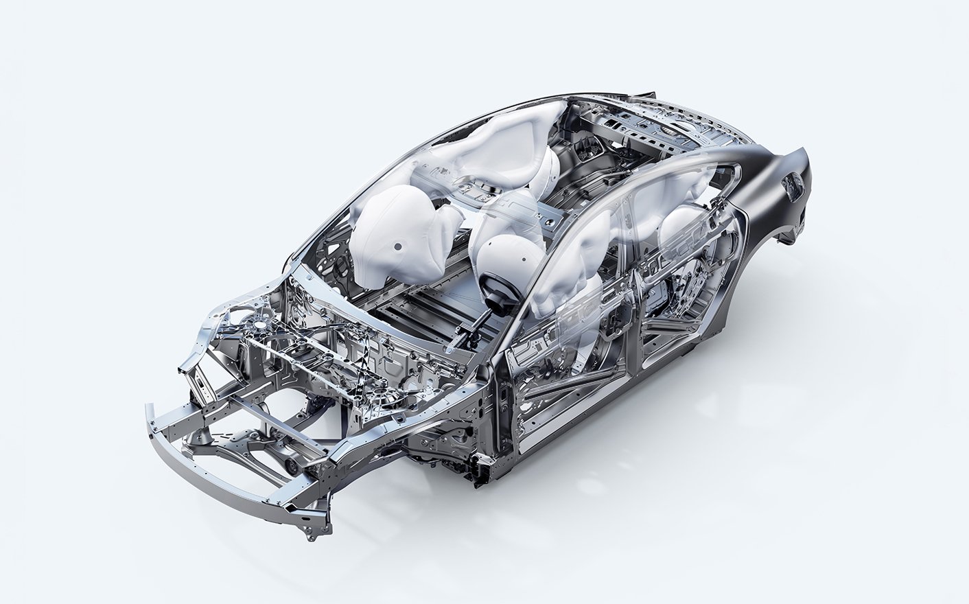 Numărul airbagurilor a crescut de la 7 la 9 pe toate modelele. Iar structura caroseriei mixte din oțel-aluminiu, de tip „armor cage”, va include elemente suplimentare care îi măresc rezistența de la 2000 la 2200 MPa. Protecția sub caroserie de 1500 MPa (rezistență la zgârieturi) și acoperirea ”anti-gloț” a bateriei sunt alte beneficii standard.