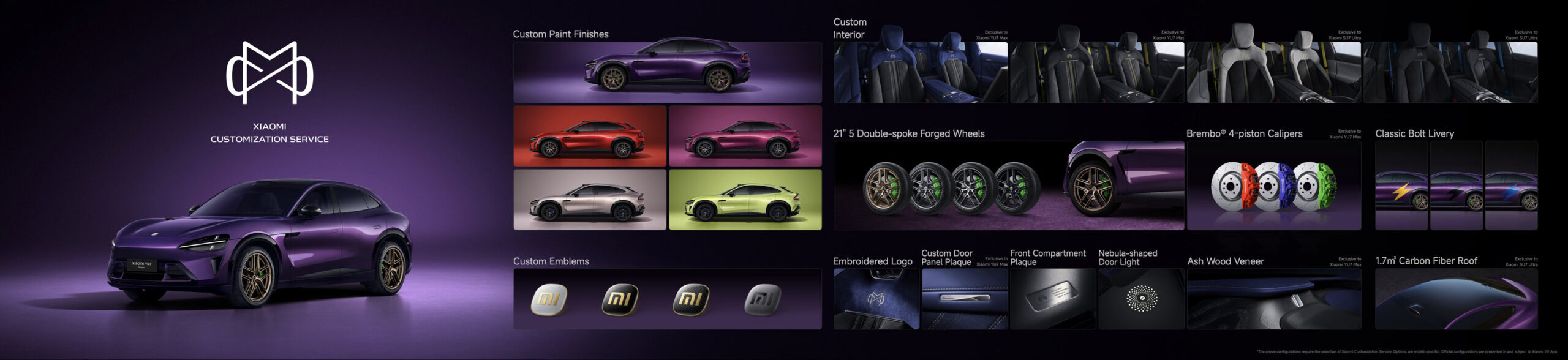 Xiaomi Auto a inaugurat în acest sens un centru special de personalizare de peste 400 m2 la magazinul său de lângă fabrică, primul de acest fel în segment. Acesta include zone de expunere, producție și ateliere practice, rivalizând cu atelierele private ale mărcilor de ultra-lux.