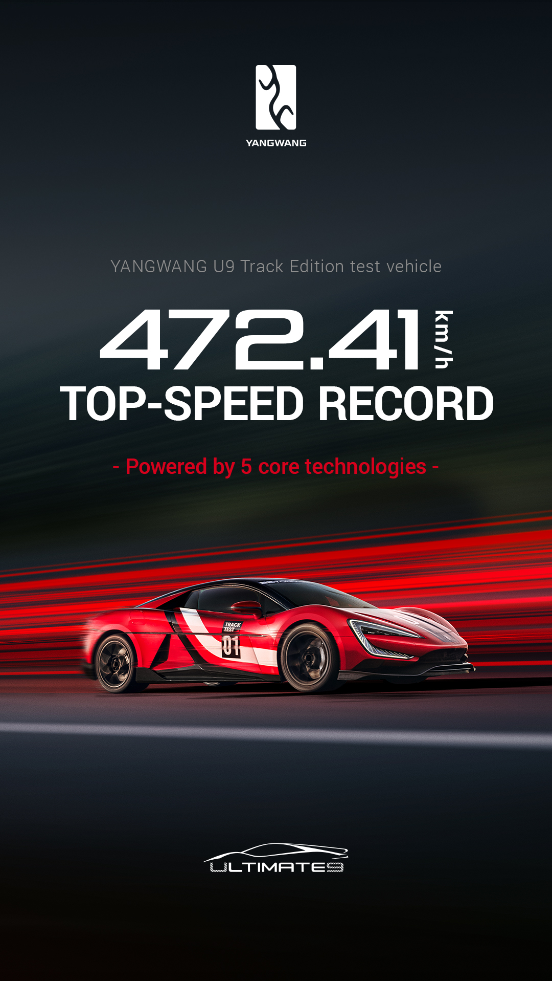 Marca de lux a celor de la BYD, Yangwang, anunță că a făcut istorie pe pista de testare ATP Automotive din Papenburg, Germania. Supercarul său electric U9, într-o versiune specială Track Edition (însă într-o interpretare de prototip de teste cu vitezometru deblocat), a atins o viteză maximă record de 472,41 km/h pe 8 august 2025. Acest rezultat îl consacră drept cel mai rapid vehicul electric din lume printre cele destinate producției în serie.