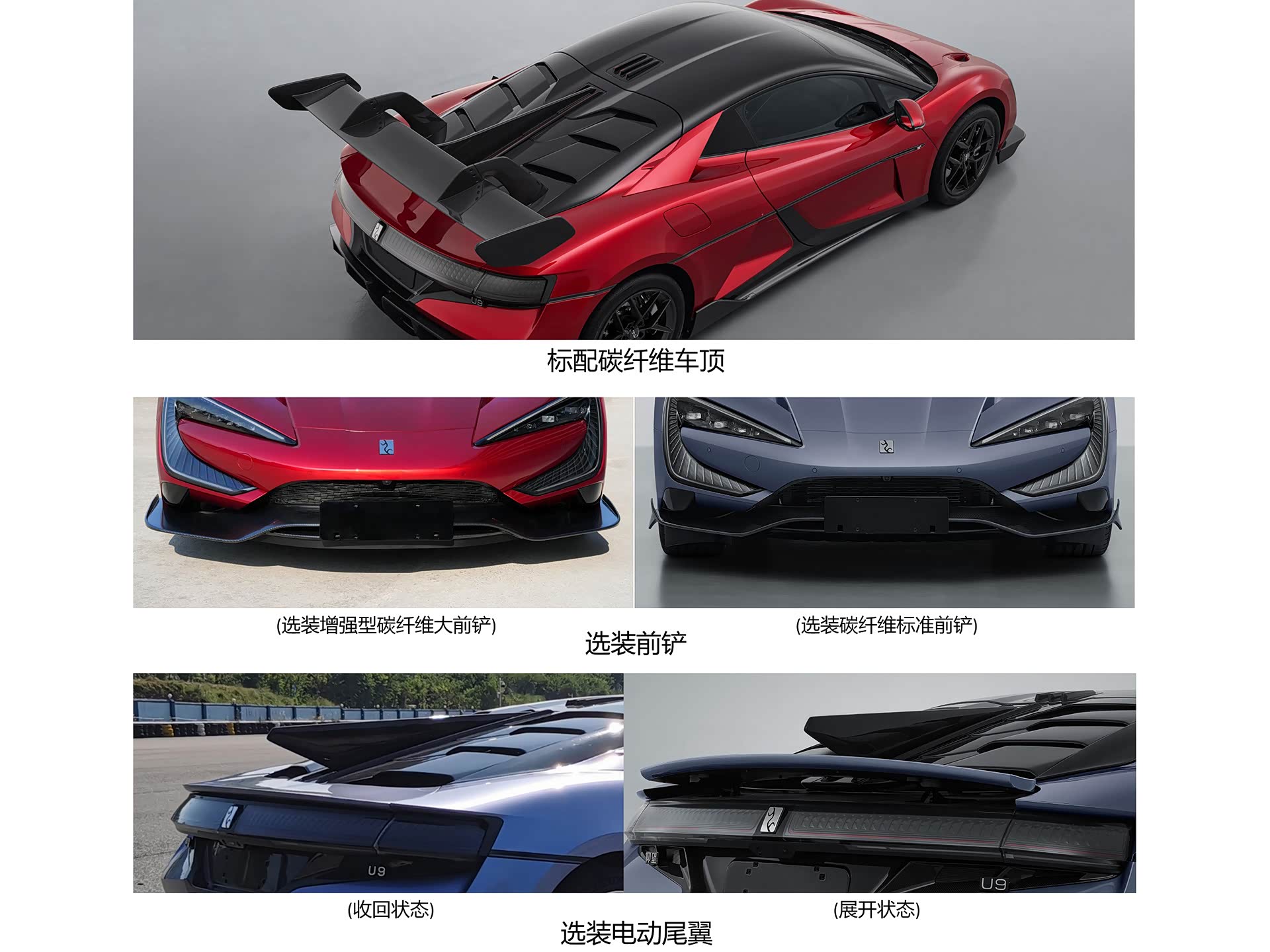 Designul aerodinamic al lui U9 Track Edition păstrează linia modelului de serie, fiind completat de un splitter frontal opțional din fibră de carbon, deja lansat în producție de masă. Această combinație a fost testată riguros, confirmând fiabilitatea științifică și tehnologică a modelului în condiții de viteză ultra-înaltă.